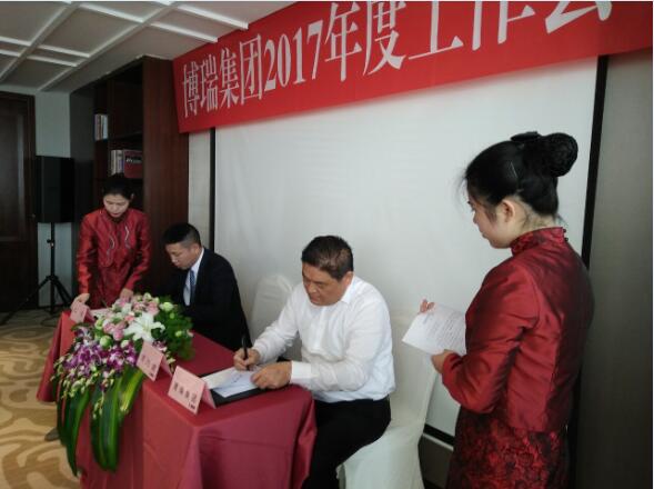 会议首先举行了隆重的签约仪式,由方董事长与各子公司负责人分别签订了2017年度《经营目标责任书》。随后,各公司和各部门就2016年的工作情况进行了深刻分析和总结,对2017年的工作计划进行了表态。方董事长认真听取了大家的汇报,他指出,2016年,是博瑞集团相对困难的一年,在这一年里,博瑞团队的凝聚力显著提升,博瑞酒店顺利投入运营,博瑞集团打开了融资新局面,并成功迈入了3P行业,这些成绩的取得,得益于大家的共同努力,得益于各公司、各部门的大力支持和配合,他对大家所付出的辛苦努力表示由衷的感谢。同时,他分析了当前经济形势并对2017年的工作进行了安排部署,要求大家统一思想,坚定信心,确保全年各项目标任务顺利完成。