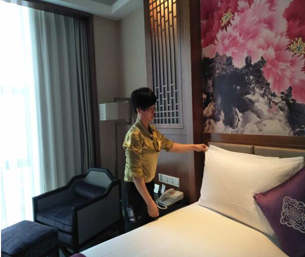 客房日常清洁整理又称为做房,通常包括物品整理、打扫除尘、擦洗卫生间、更换及补充用品、检查设备。熊玲丽的主要工作就是认真检查已清理完毕的客房,保证每一间客房都是干干净净的,并且设施设备完好无损,可以满足下一位住客的需求。除了日常工作的一丝不苟,遇到高峰期,每个服务员都超负荷的运转,熊玲丽会主动要求分担服务员的工作,保证尽量不留脏房,当日工作,当日完成,她就像一块砖哪里需要哪里搬。
