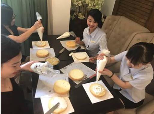 说到生日,大部分人都应该想到的是生日蛋糕吧!在香喷喷的蛋糕胚上,抹上浓浓的奶油,装点各式各样的造型、水果,感觉是不是很棒呢?如果是自己做的,那就更棒了!所以,在百汇酒店精心策划、认真筹备下,决定本次员工生日会让寿星们集体在蛋糕店做专属自己的蛋糕!到了蛋糕店,大家伙都表示没做过蛋糕呀!不用怕,我们还有专业的蛋糕师傅,有什么不会的都可以请教老师。酒店的同事们都非常聪明伶俐、心灵手巧,DIY蛋糕对寿星来说当然不在话下。最后,每个人都做出了属于自己的一个生日蛋糕,大家看着自己做出来的蛋糕,不禁感慨道,在百汇大酒店又成长了一岁。其实,百汇酒店和大家一样,也成长了一岁!