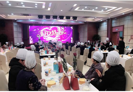 3月5日下午,在百汇大会堂,酒店为女神们准备了鲜花与礼品,慰劳平日里辛苦的女神们,红色的玫瑰只不过是衬托,在勤劳与认真负责的女神面前也要逊色三分。平时工作中一位位干练优雅的职场女性们聚在一起,脱下严肃的职业装,戴上厨师帽,挽起衣服袖,尝试现场制作蛋糕,做了一回名符其实的“蛋糕俏佳人”。活动开始前,邱总代表百汇商贸有限公司工会向全体女职工致以节日的慰问和美好的祝愿,同时感谢大家在各部门、各岗位上为公司发展所作出的贡献,并祝福大家一起度过一个难忘、愉快、有意义的节日。