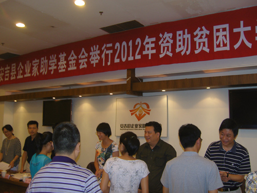 我县企业家助学基金会发扬“富而好礼、关注民生、勇担社会责任”的精神,坚持开展爱心助学活动。根据前期贫困学生自主申报,经审核公示后,确定64位贫困大学生为2012年度资助对象,被录取全日制本科生每人资助5000元,全日制专科生资助3000元。本次受资助的同学对企业家助学基金会的关心和帮助表示了衷心的感谢,并承诺一定会刻苦学习,努力钻研,发扬吃苦耐劳的优良传统作风,以优异的成绩回报社会。