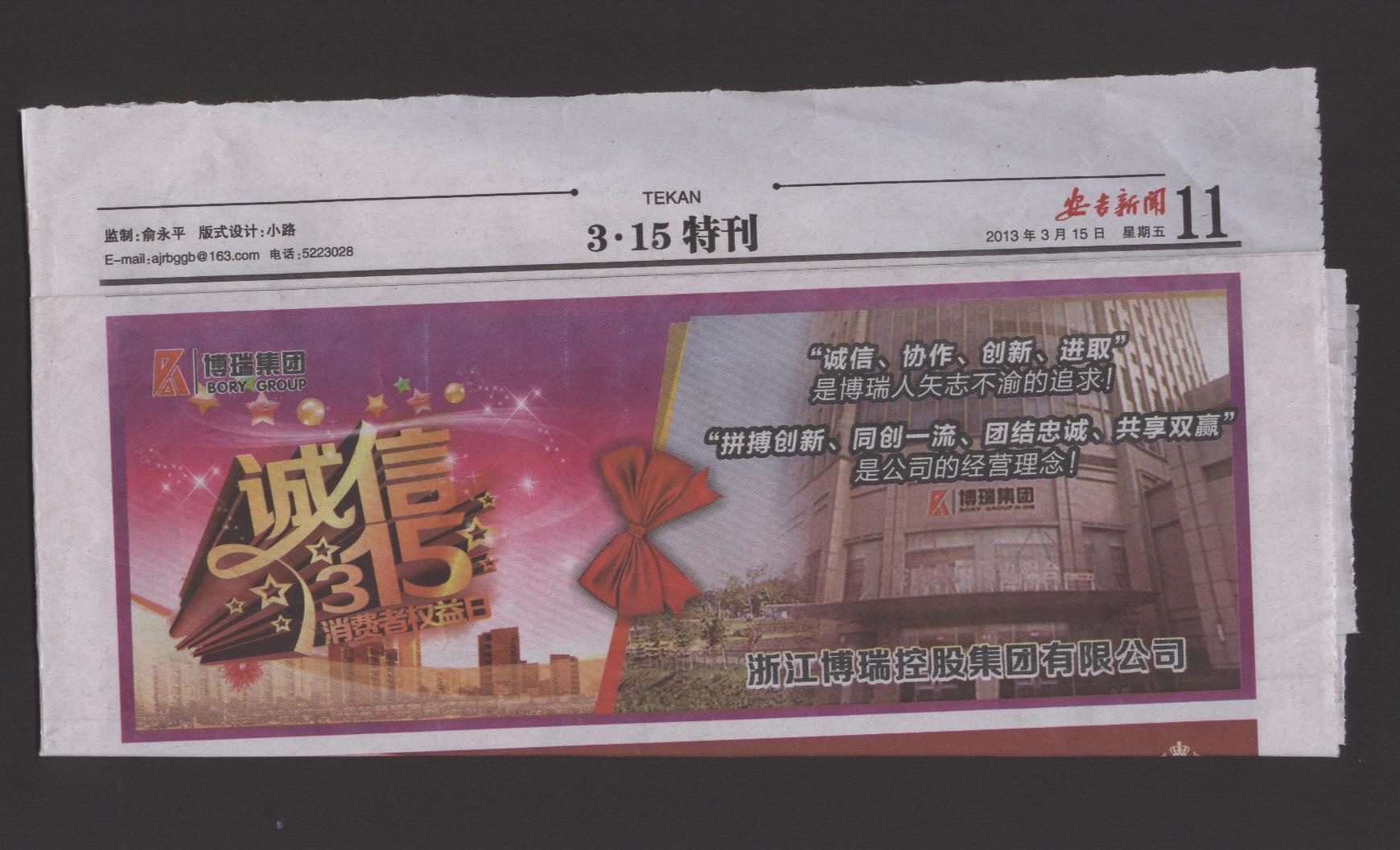 2013年3月15日《安吉新闻》3.15特刊