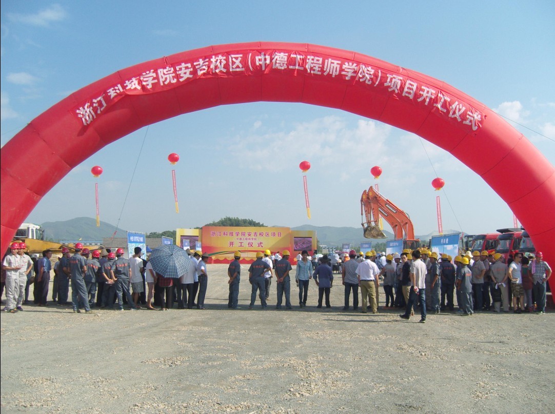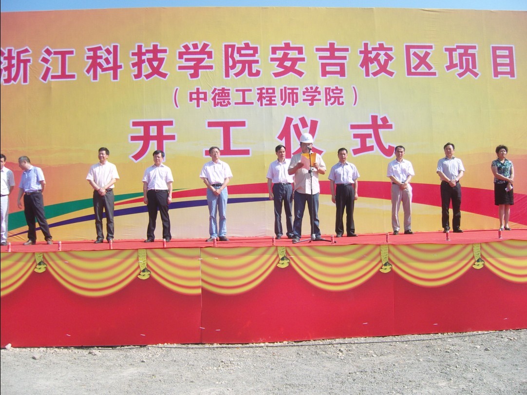 2013718,在热烈的掌声中,浙江科技学院安吉校区(中德工程师学院)工程开工典礼在县皈山乡科教文新区施工现场隆重举行。市委书记马以宣布开工建设,省教育厅副厅长鲍学军,浙江科技学院党委书记王建华,市、县领导高屹、单锦炎、王树、梁为民、叶海珍、陆为民、凌建荣、张建乐、任贵明、黄亮参加开工仪式。
