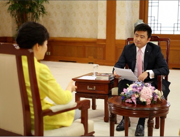 【芮成钢】朴槿惠总统阁下,非常感谢您能在青瓦台接受我们的专访。