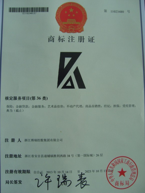 近期,浙江博瑞控股集团有限公司申报的“博瑞”文字及图形商标顺利获得了国家工商行政管理总局商标局正式颁发的商标注册证书,这将有利于公司加强对品牌的保护,进一步提升品牌效应。