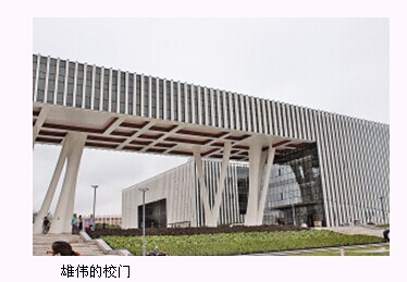 沿着康山大道到达教科文新区,在道路东侧,一座现代化的大学城坐落在青山绿水间。