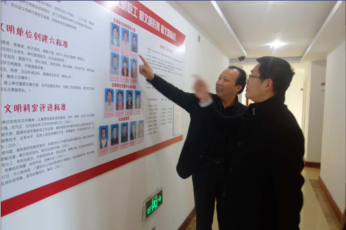 2014年11月26日上午,县文明办考核验收组莅临博瑞集团总部验收县级文明单位创建工作,副总裁陈小平陪同考核。