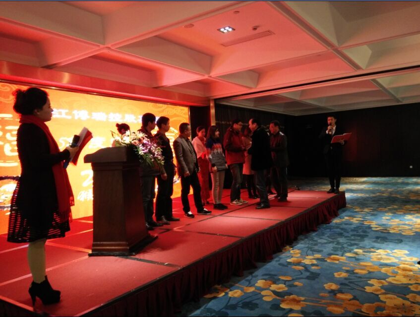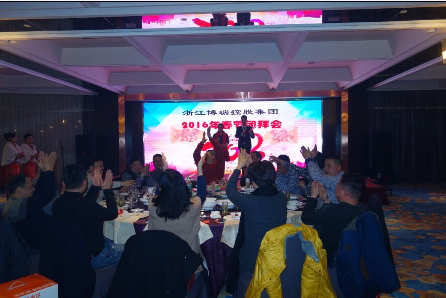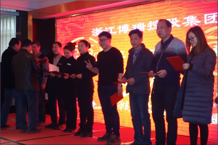 吉羊辞岁,金猴送瑞。2月4日晚,百汇宴会厅内张灯结彩,欢声笑语,一派喜气洋洋迎新春景象。当晚,2016年春节团拜会暨先进表彰大会在这里隆重举行,集团全体员工欢聚一堂,同贺新春。博瑞集团董事长兼总裁方钦江、博瑞集团陈副总裁、博瑞集团鲍副总裁、万邦实业总经理童初平、万邦实业副总经理金亚言,浙江引拓建设总经理安煜操等领导与嘉宾出席了团拜会。 团拜会首先由集团公司对博瑞控股集团公司财务部、马道花等共计22个先进集体和先进个人分别授予“2015年度先进(文明)科室”、“2015年度优秀经理”、“2015年度优秀(文明)员工”光荣称号,希望通过表彰大会和物质奖励,为整个集团树立起“团结协作、吃苦耐劳、勇于担当、敬业奉献“的榜样,从而在全体干部职工中掀起一个“学先进、比贡献”的高潮。 表彰大会之后,博瑞集团陈副总裁代表浙江博瑞控股集团向一年来在各个岗位上辛勤工作的全体干部职工及家属致以新春的祝福。随后,他对2015年我集团旗下引拓建设、博引水利、博瑞商贸等公司的工作做了简要回顾,希望集团全体职员工以饱满昂扬的精神状态,同心协力、奋力拼搏,在新的一年能够取得更加优异的成绩。同时,他表示,2016年,是博瑞集团大发展承前启后、继往开来的关键一年。我们坚信,在方董事长的正确领导下和全体博瑞员工的共同努力下,我们的各项奋斗目标一定能够实现,我们一定可以把博瑞集团建设成为现代化的一流集团企业!