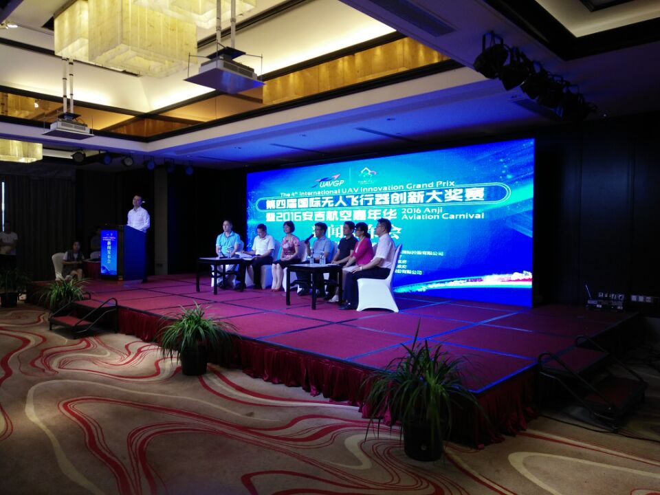 2016年9月12日下午2点,第四届国际无人飞行器创新大奖赛暨安吉2016航空嘉年华活动在鼎尚驿文化主题酒店隆重举行新闻发布会。据了解,本次大赛将于10月19日至10月23日在我县天子湖镇举行,主要包含创新大奖赛、高峰论坛、航空嘉年华三大块,以“创新+科普”为主题,是一场集科技、娱乐、趣味为一体的航空盛会。作为本次大赛的重头戏,创新大奖赛下分无人机竞技赛、中国无人机竞速巡回大奖赛—安吉站、国际涡喷航模编队大师赛三类赛事,大奖赛总奖金额为人民币127万,其中固定翼赛设竞技大奖,奖金额创历史性新高,为人民币50万元。